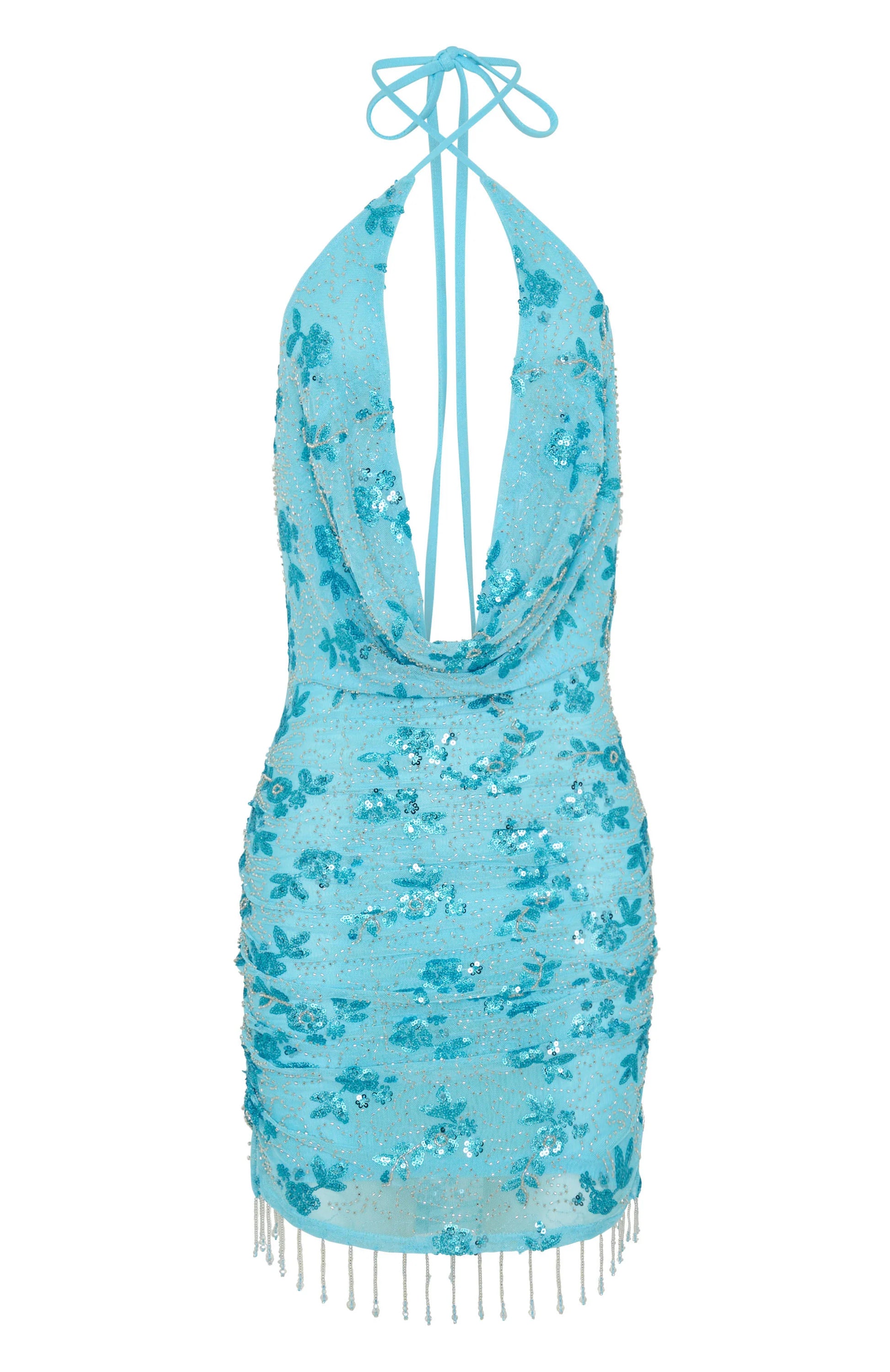 A must have this summer! The Barcelona Dreams Beaded Mini Dress Baby Blue features a halter neck design with back self tie closure, front cross over design, ultra low plunge neckline with cowl detailing, mini length with beaded hem detailing, and backless. Complete the fit with your favourite kitten heels, gold jewellery and shoulder bag for a look we love!