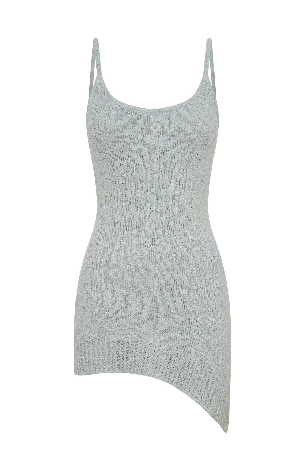 Keep it simple and summery! The Cutie Code Knit Mini Dress in Ice features thin shoulder straps, scoop neckline, and sheer crochet hem, complemented by an unlined design for a breezy feel. Style with simple heels and jewellery for a understated but chic look.
