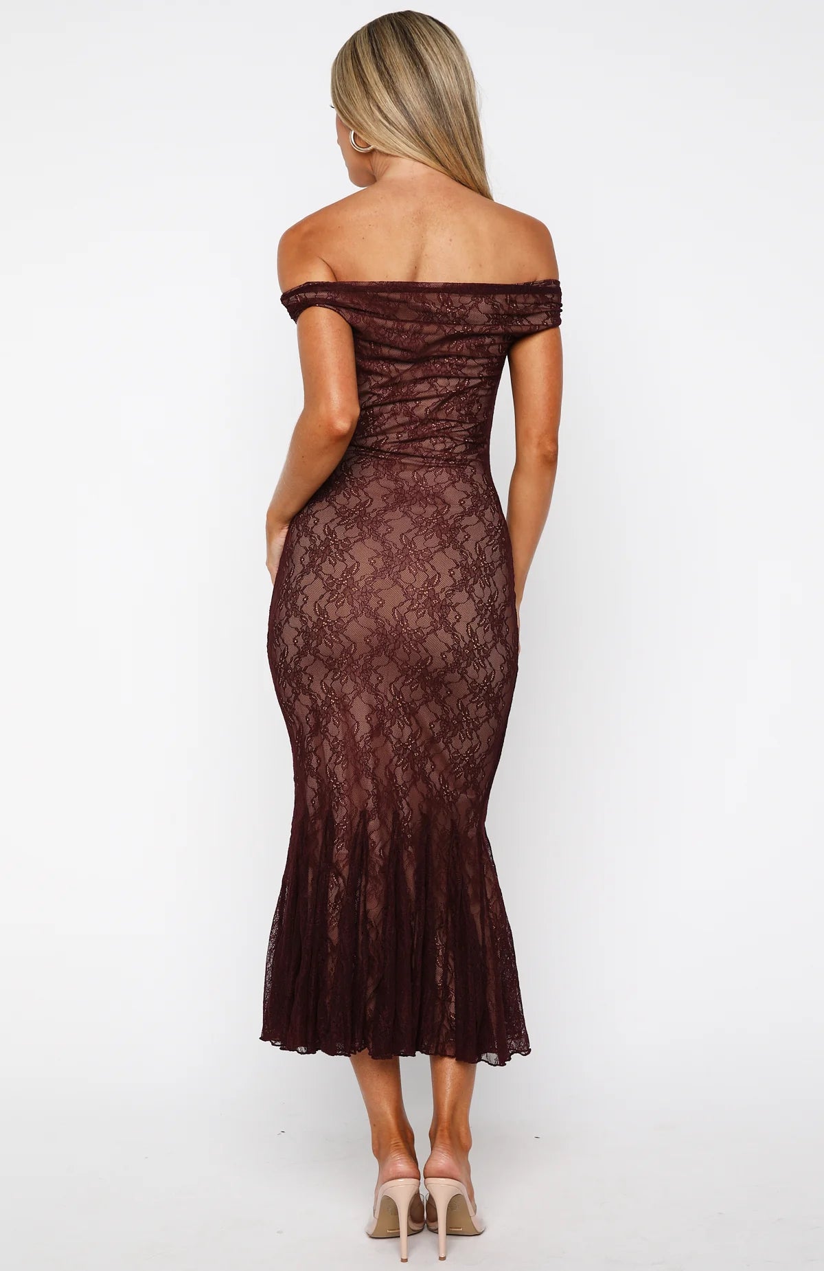 Float through the city of love in the Defied The Odds Off Shoulder Lace Maxi Dress Wine! Designed with an off-the-shoulder elastic neckline, a fitted bodice, and a flirty godet hem. Fully lined with high-stretch fabric and finished with a lace overlay. It’s the ideal canvas for minimalist heels and delicate jewellery, making it your perfect partner for an elegant soirée on the Champs‑Élysées.